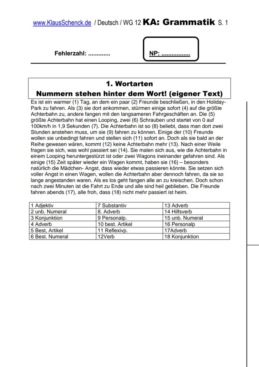 Die Wortarten Tabelle mit den Lösungen ist am Ende der Seite zu finden, was den Schülern ermöglicht, ihre Antworten selbstständig zu überprüfen und aus ihren Fehlern zu lernen.