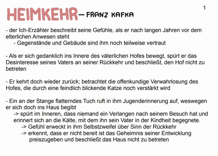 Die vierte Seite der Analyse von Franz Kafkas "Heimkehr" konzentriert sich auf die verwendete Symbolik und Bildsprache. Diese Elemente sind entscheidend für das Verständnis der tieferen Bedeutungsebenen der Parabel.