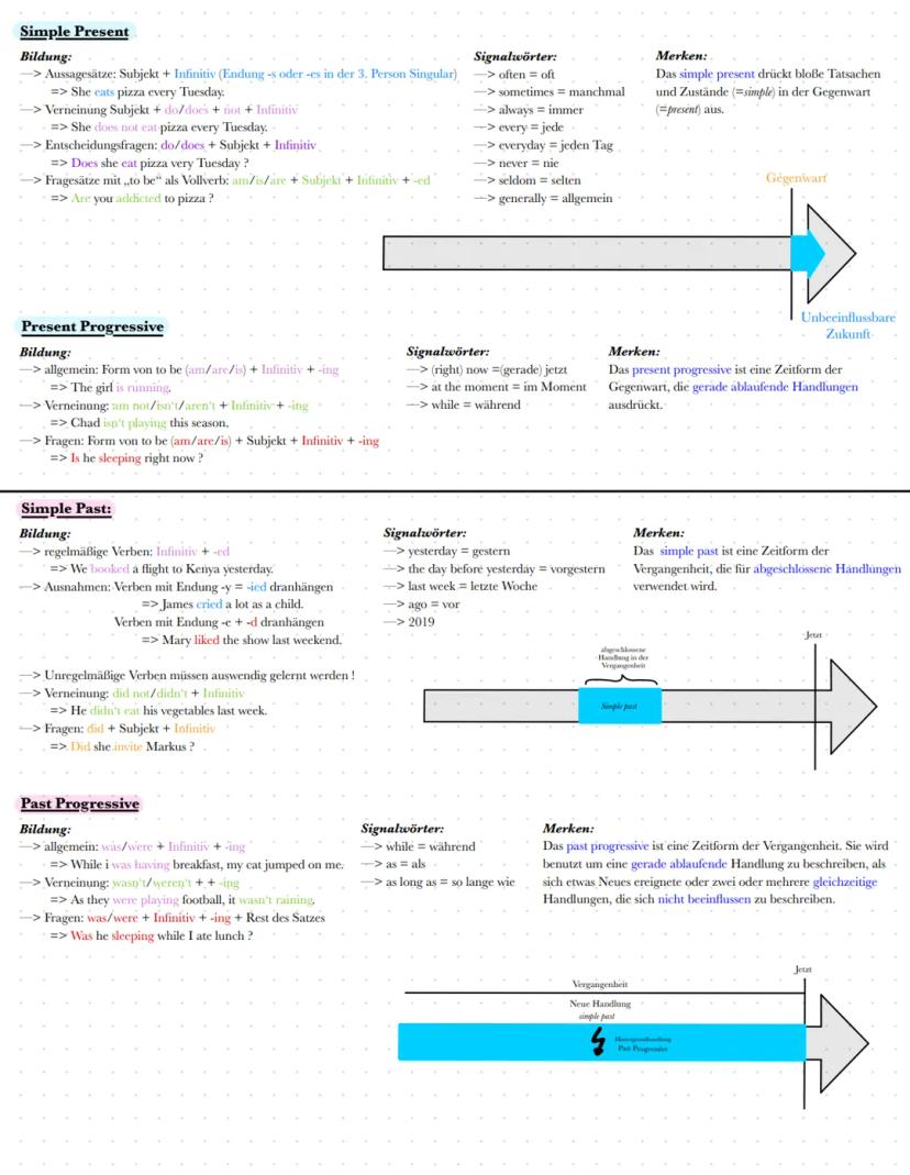 alle Zeitformen der englischen Grammatik mit Beispielen